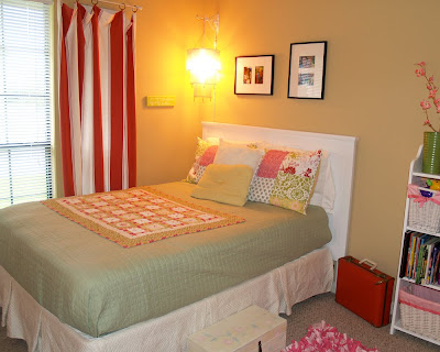 Here's the finished headboard. Basically, my husband took the two ends of the crib and used metal brackets to attach them at the back. Then, he used furniture wall straps to tether the headboard to the wall--nice and secure. This headboard could fit up to a queen-size bed, and I love that my daughter still has a piece of her babyhood with her as she sleeps.